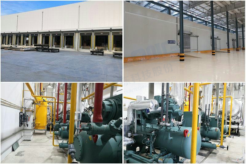 項目采用泵供液系統(tǒng),可以實現(xiàn)-5~-18℃變溫調(diào)節(jié),采用開啟式螺桿壓縮機、自動空分系統(tǒng)、物聯(lián)網(wǎng)系統(tǒng),屬于高標準自動化立體庫。