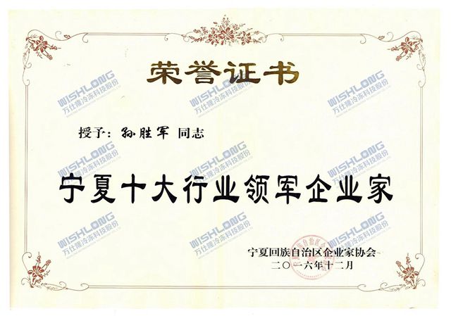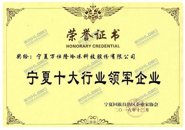 中國(guó)實(shí)體經(jīng)濟(jì)的健康發(fā)展離不開(kāi)促進(jìn)經(jīng)濟(jì)發(fā)展的優(yōu)秀企業(yè)和優(yōu)秀的企業(yè)家。12月16日由寧夏企業(yè)家協(xié)會(huì)、寧夏外商投資企業(yè)協(xié)會(huì)主辦的“首屆寧商大會(huì)暨第十一屆寧夏企業(yè)家年會(huì)”在寧夏銀川成功舉行。本次大會(huì)以“智慧寧商,創(chuàng)新未來(lái)”為主題,近600位區(qū)內(nèi)外企業(yè)和國(guó)內(nèi)知名專家學(xué)者、新聞媒體及資本機(jī)構(gòu)等匯聚銀川共話寧商發(fā)展,并在大會(huì)上對(duì)促進(jìn)寧夏經(jīng)濟(jì)發(fā)展做出突出貢獻(xiàn)的企業(yè)給予表彰。寧夏萬(wàn)仕隆冷凍科技股份有限公司作為“寧夏十大行業(yè)領(lǐng)軍企業(yè)”受到了自治區(qū)各級(jí)政府的肯定和贊譽(yù)。企業(yè)將再接再厲以寧夏行業(yè)領(lǐng)軍的姿態(tài)引領(lǐng)制冷行業(yè)健康繁榮發(fā)展。